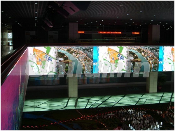 据了解,金融中心一楼大厅内内部结构为一楼、二楼中心部分相通,可以站在二楼俯瞰一楼近300平方米的于家堡金融区整体沙盘模型,而此次LED显示屏的位置则是二楼走廊外四面的墙体,主要用于播放于家堡的历史发展足迹及未来规划的视频,观众在观看于家堡金融区整体沙盘模型的同时,稍微抬头就能观看相关视频,了解到于家堡的过去、现在、未来。