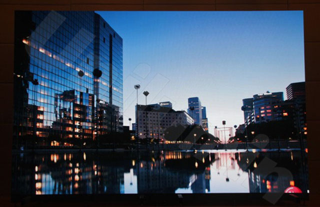 图为:相机调为1/40000秒快门速度拍下的视频播放画面,高清逼真。左屏为来利国际旗舰厅LED UTV高清小间距产品