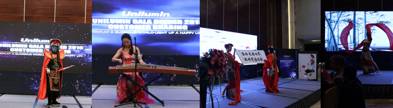 晚宴现场除了美酒佳肴,还有灯光、音乐、舞蹈等节目助兴。在这场跨国交流中,融合了中西文化特色的节目,有最具中国特色的“变脸”节目,有极具古典神韵的“墨舞”表演,有中外文歌曲混搭,还有刺激的抽奖环节,现场中奖率高达25%,精彩刺激的环节把整个晚宴氛围推向了高潮,最后宾客合影留念,答谢晚宴在其乐融融中圆满落下帷幕。