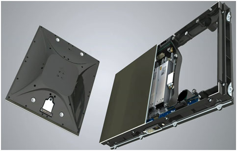 二、首个攻克模组箱体分离式结构技术,实现自动接线、智能调节、高效散热箱体和模组采用分离式结构,现场安装时,先安装箱体,自动热拔插式安全接线,再通过箱体的六方位拼接系統拼成整屏画面,调节屏体拼接精度小于等于0.1mm,再安装模组。箱体与模组分离式结构,电源贴在后腔结构上,热量从箱体后腔延伸,实现高效散热。