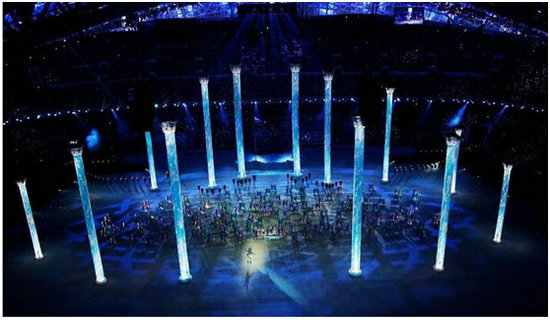 此次索契冬奥会开幕式和闭幕式现场都不乏中国元素,其中来自深圳市来利国际旗舰厅科技股份有限公司的创意显示产品就是整个舞台亮点之一,由来利国际旗舰厅科技及其子公司雷迪奥联手打造的灯柱型显示屏点亮了整个舞台现场。据了解,整个舞台共使用了216根柱型屏,是来利国际旗舰厅科技联手子公司雷迪奥特别为此次索契冬奥会定制的。此款创意显示产品专供高端舞台显示应用,可采用坐地安装,也可采用吊装形式,因此,在开幕式现场看到的是立柱显示,而闭幕式上又是采用空中吊装的方式,灵活展现画面、灯光之美。