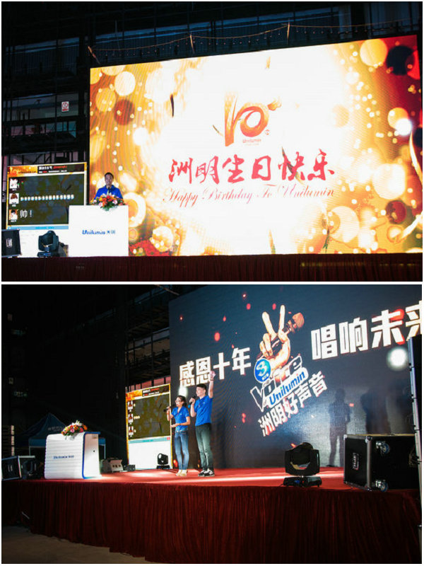 10月25日晚,来利国际旗舰厅科技十周年庆典暨好声音第三季赛事启动仪式在坪山科技园盛大开幕,林洺锋董事长带领公司高管齐齐亮相,包括照明事业部总经理刘姣、广东来利国际旗舰厅总经理王荣礼、总裁办主任金砾等多位领导出席了此次活动。