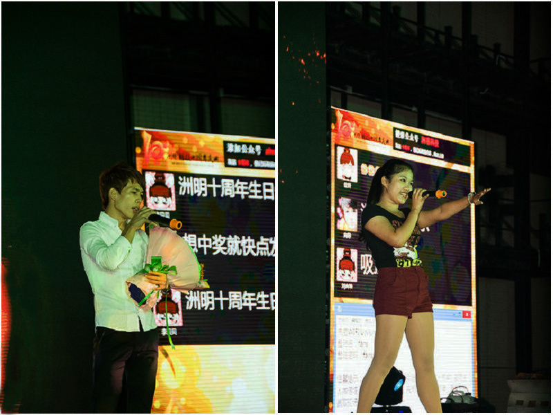 作为十周年庆和好声音赛事的启动仪式,活动开场首先播放了十周年的系列活动视频和往届好声音的精彩花絮,这些视频的首映也引起了现场观众的极大兴趣,场上座无虚席,还有很多观众全程站着观看,场面相当壮观,数十平米的露天大舞台、超大的演播屏幕、超炫的灯光音响及现场数百人的火热场面,晚会还未正式开始,在场所有的人似乎都被点燃了,只要稍稍一触,就能达到沸点。
