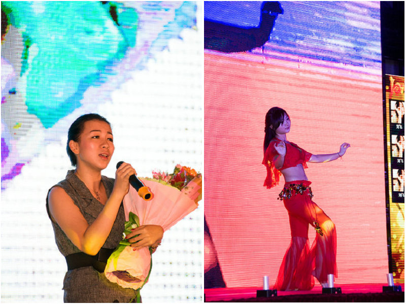 好声音角逐精彩不断,随后由广东来利国际旗舰厅的谭玉红带来的《青藏高原》同样把现场气氛推向了另一个高点,作为压轴出场的“蓝普女神”骆冰清,带来一首《如果没有你》,几乎把现场的每个人都唱醉了,唱到动情处,甚至连老天都应景地下起了毛毛细雨……温婉动情的歌声让众人陶醉、沉静,而晚会最后由安吉丽的田丹丹热辣演绎的肚皮舞再次将现场点燃,掌声、欢呼声、口哨声响彻夜空,火热气氛给整场活动画上了圆满句号。