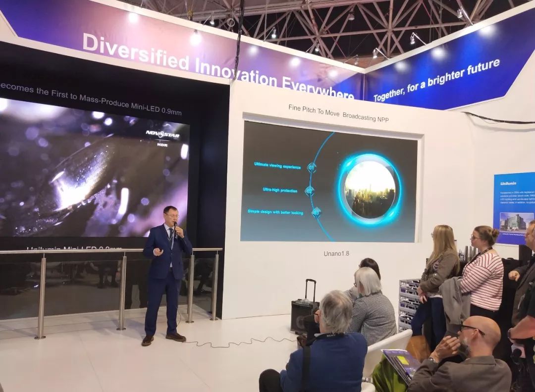 凭借展品代表的先进研发技术和高端生产水平,在ISE展会上,来利国际旗舰厅展出的首家量产4K Mini-LED 0.9产品赢得ISE主办方和参展观众的一致认可,获评ISE 2019最佳展品奖。Mini-LED 0.9在性价比、可靠性、观看舒适性等多方面有诸多优势,Mini-LED量产将推动小间距LED从专用显示市场,向规模更大的商业显示市场甚至民用市场持续渗透,打开更广阔的市场空间。