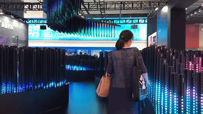蔷薇科技联合当若科技于光亚展规划统筹的「数字新丝路」多媒体互动艺术装置,由1576组灯具构成,全场域共采用6548根灯条, 建构出A/B/C/D/S/F六大展示区域,以律动、多层次的方式呈现结构,结合缤纷的动态场景,展现不同LED视频灯光的独特色彩。大数据链接与及时运算电脑数位技术的应用,打造出整个展场最为吸睛的装置艺术。