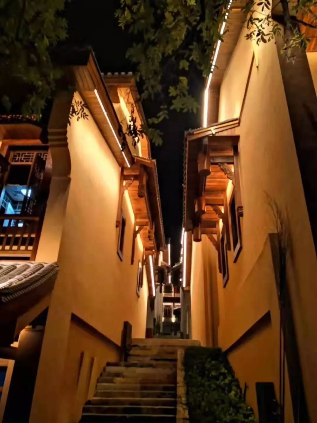 精致的木雕和房屋飞扬的翘脚构成了典型的具有沅湘特色的江南民居图。“人向阶梯时上下,屋随山势自高低。”在高低错落、左拐右弯、曲折蜿蜒中,可享受到音乐般起伏的节奏。温暖的灯光描绘出一副明清民国市井生活的风情画。