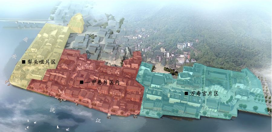 本案照明设计内容为洪江古商城核心景区“烟雨洪江”的建筑以及景观照明。项目用地呈“7”字形,东、北两面分别临巫水和沅江,南面、西面为洪江古商城核心景观区, 分为犁头咀片区、一甲巷片区、万寿宫片区。