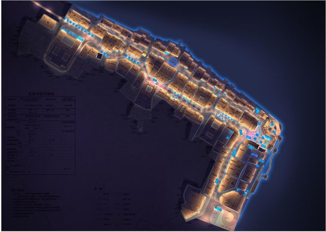 本案的照明设计借用连绵的建筑顶部灯光和沿江景观灯光来表达山水与建筑、景观的关系,借以表现洪江古商城的“山为骨架、水为血脉”的构架。以“光影流转洪江美,古韵湘西洪商情”为主题,凝练洪江独有的洪商文化内涵,沿袭洪江古建筑风貌,打造具有洪商旅游特色的夜间景色。