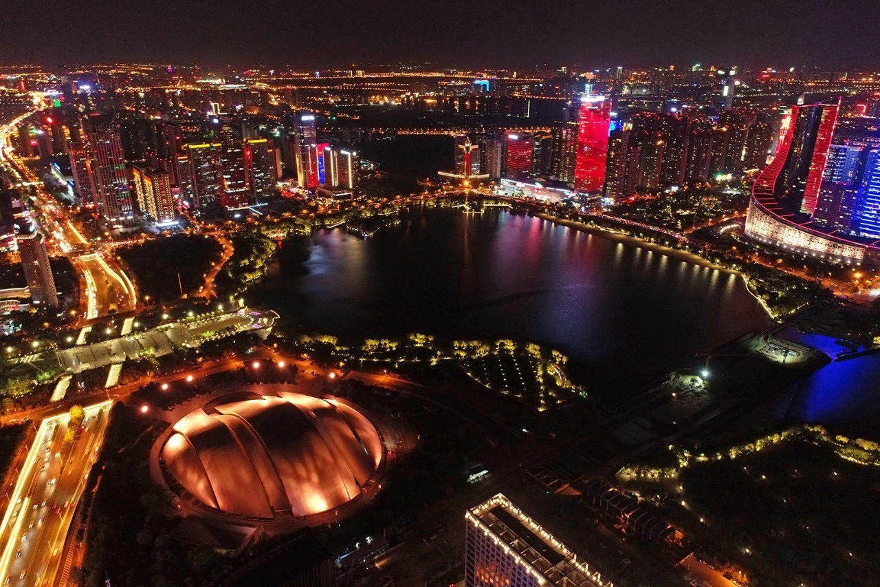 合肥天鹅湖夜景已经成为著名“网红”打卡地。华灯璀璨,一城夜色,炫彩夺目的灯光交织在一起,天鹅湖周边130多栋楼体的数十万盏灯串联了起来,共同演绎一场主题为“合肥之心,祝福祖国”的灯光秀。