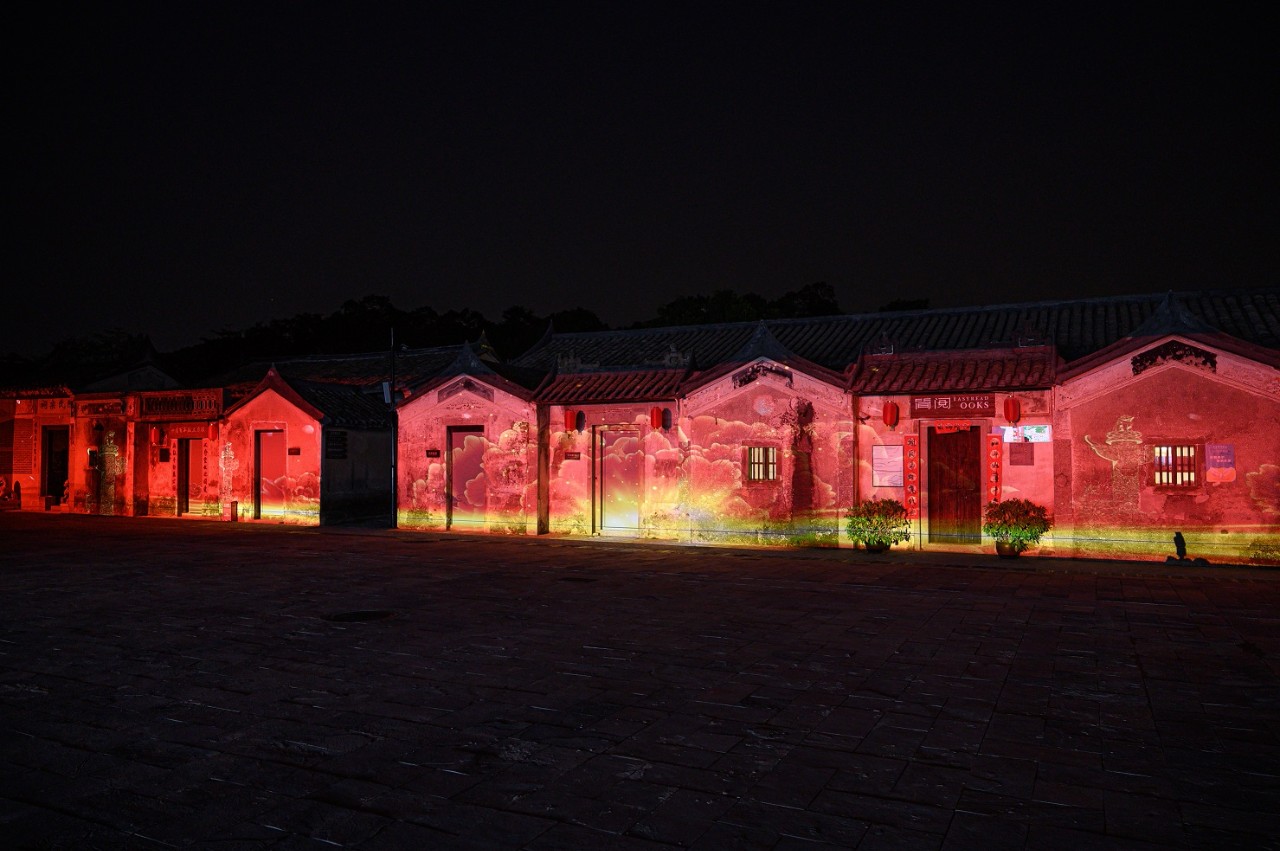 观澜版画村,深圳十大客家古村落之一,位于深圳市龙华区观澜街道牛湖社区,中国新兴木刻运动的先驱者、著名版画家、美术理论家陈烟桥的故乡。版画村文创灯光项目于9月29日亮灯。
