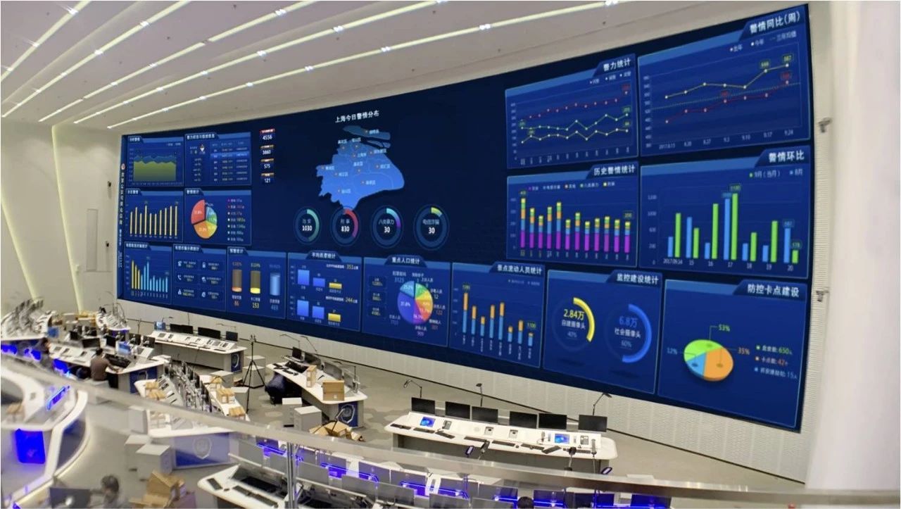 上海市公安局新指挥中心项目,行业P1.2以下单块面积最大的小间距LED显示屏。