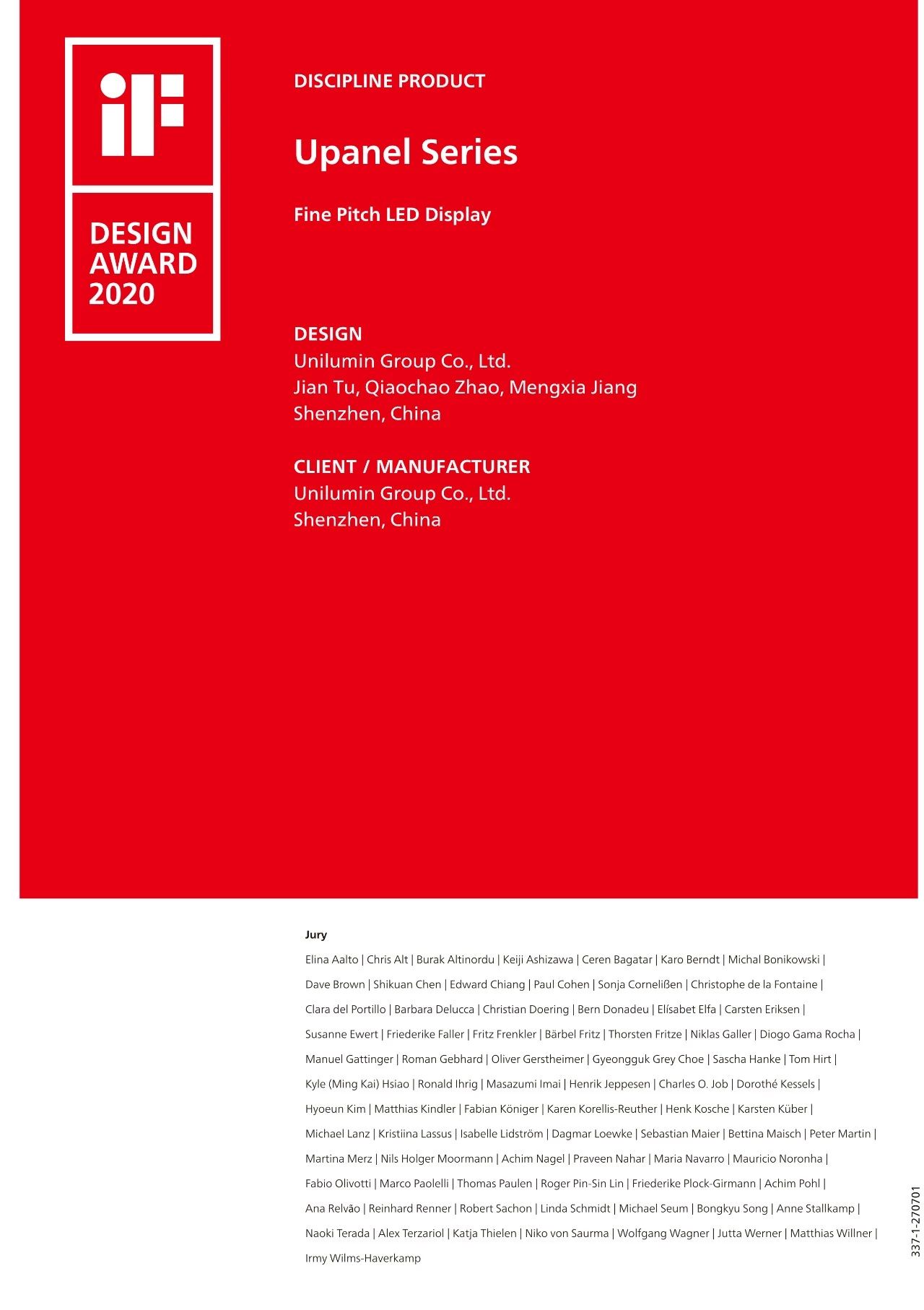 近日,来利国际旗舰厅智能小间距LED显示屏UpanelⅡ系列(即国内小间距产品“UHPⅡ”系列)荣获德国“iF设计奖”,这也是该系列产品继2019“红点设计奖”之后收获的又一项重要荣誉。