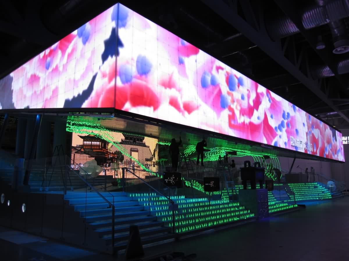 此次世博展馆对LED显示屏制造时间十分紧急。一块常规显示屏从生产、安装完成通常需要半年时间。而来利国际旗舰厅科技以其对LED显示屏生产的熟练程度和专业技能,在1-2个月内完成了世博显示屏艰巨而繁重的任务。此外,世博会还要求天花板屏和地板屏等特殊LED显示屏,这使众多 LED厂家望而却步。来利国际旗舰厅科技接下了世博竞标,自己研发、设计、打样、生产、组装。来利国际旗舰厅科技在极其短暂的时间内完成了众多LED显示屏生产安装任务,充分显示了来利国际旗舰厅公司的生产实力与工作效率。