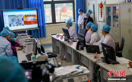 来源:人民日报,2月11日,钟南山院士团队同广东医疗队武汉前方ICU团队进行远程视频会诊。